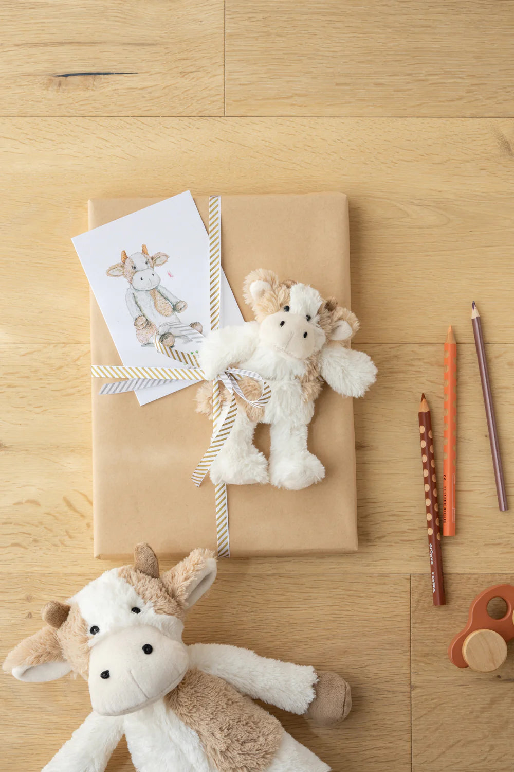 Clover the cow likes a chat. She's a bit of a gossip in fact. Always up with the latest news from the paddock, Clover's got the low down from the bull's side of the fence too. This soft and snuggly patchwork cow can't wait to give you her precious friendship & all her juicy secrets!