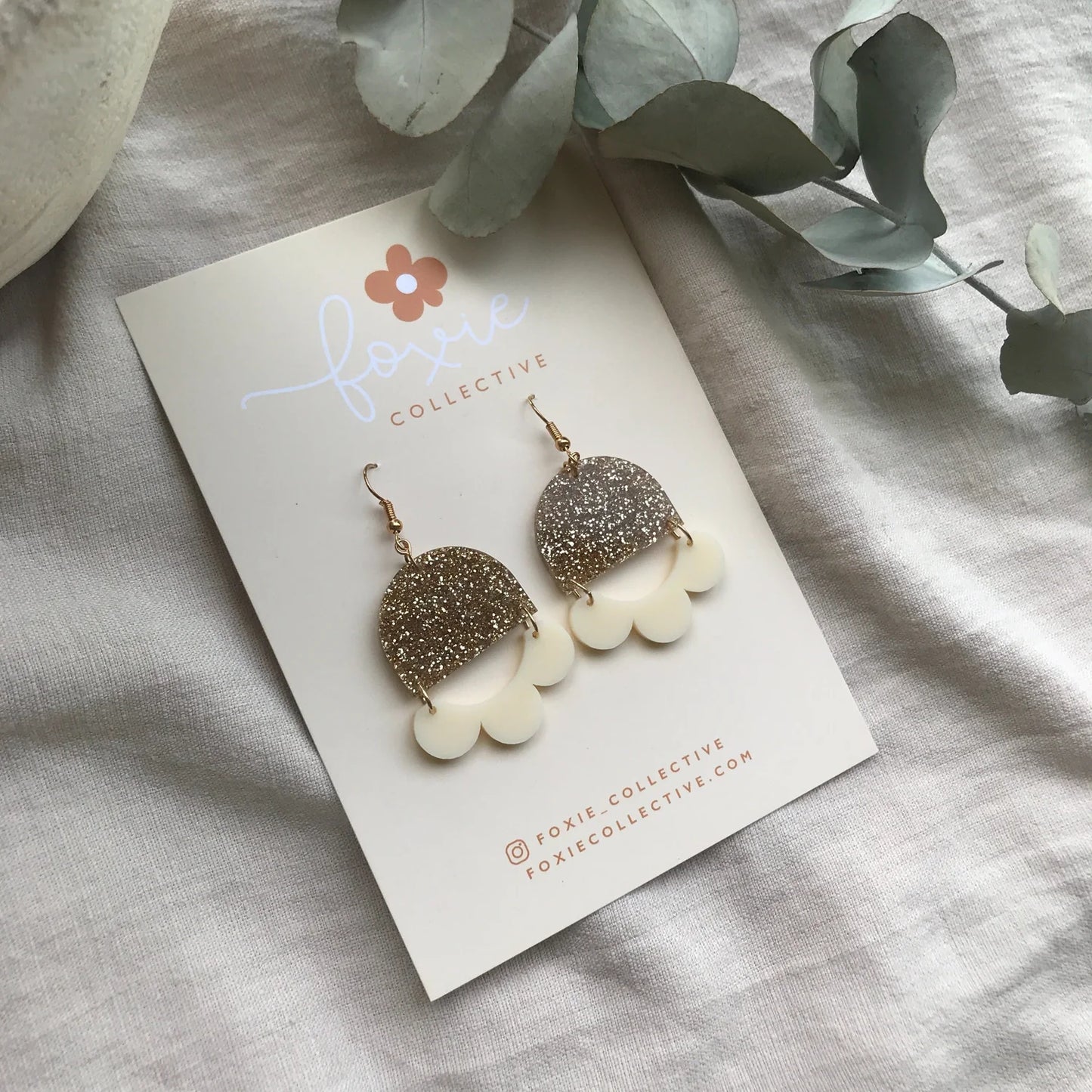 Foxie Collective - Marlie Earrings - Gold Glitter & Cream